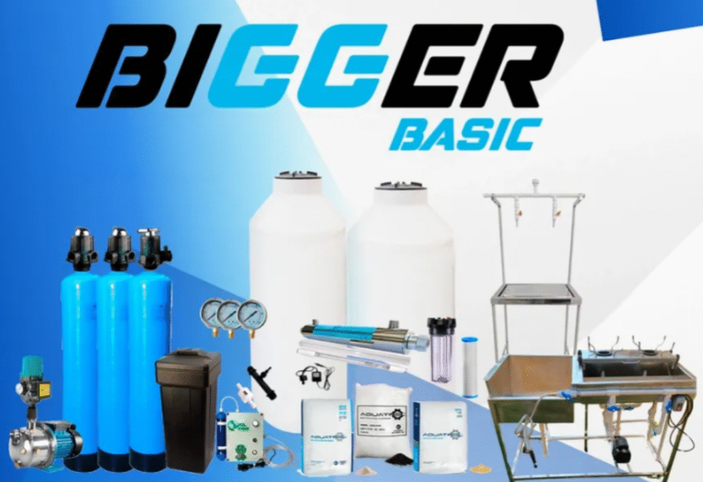 El sistema BIGGER Basic está diseñado para negocios que requieren mayor capacidad de almacenamiento y un proceso completo de purificación de agua, con la ventaja de incluir capacitación e instalación profesional.